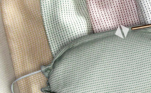 In den Einwebungsfarben: Rot, Grün, Blau -