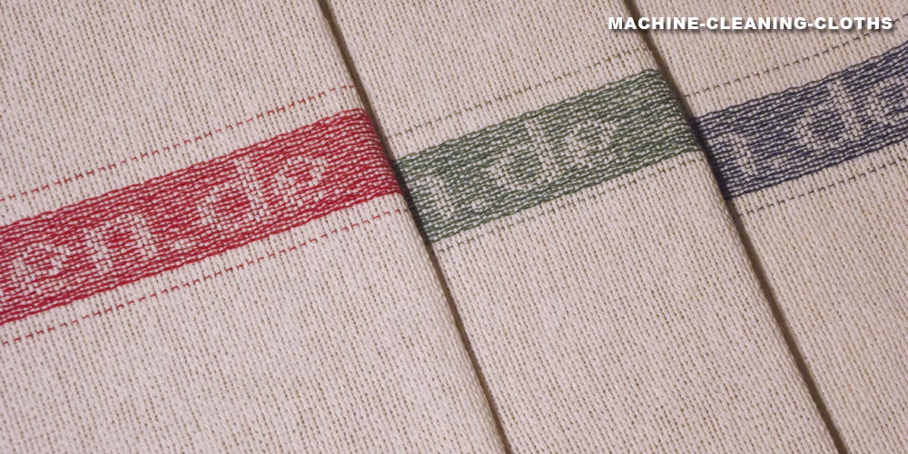 INDUSTRIAL- CLEANING CLOTHS: Available in different shapes and designs. They consist of 70% cotton and 30% polyester. Due to the different uses they are made with red, blue or green weaving. Red stands for automobile industry, blue for mechanical engineering, green for printing industry. This color codes are helpful for the