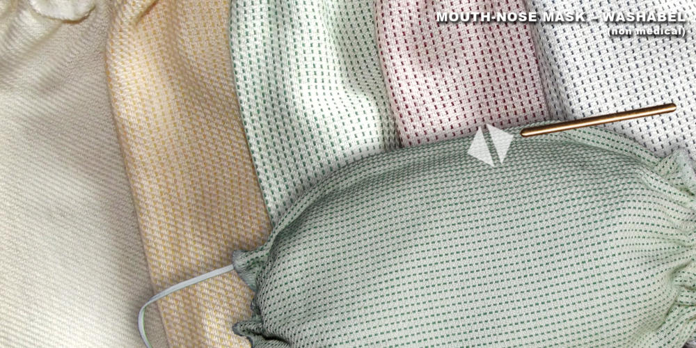 MOUTH AND NOSE MASKTested according to DIN 14683In the colors:white, yellow, green, red, blue.Material:60% bamboo fiber,40% combed cotton.Removable nose bridge, bands optional behind the ears or around the head.Hot wash: 95 degrees.Before using at wash 65 degrees.